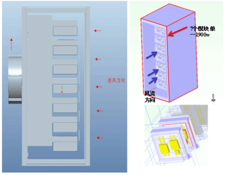 SVG散熱器單體模組熱源布置示意圖:機柜整體局部示意圖: